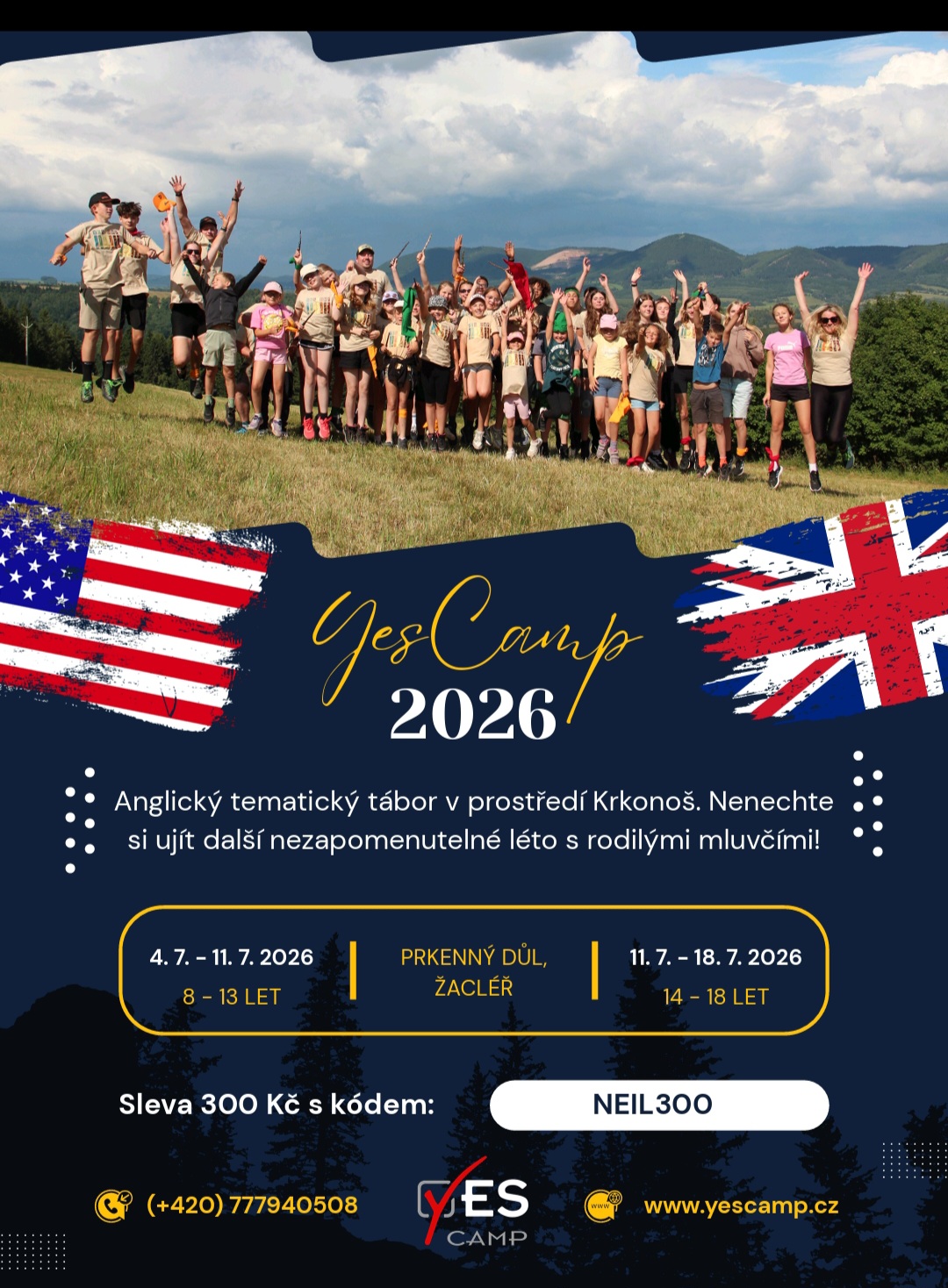 Are you interested in Summer camps for kids in English? Join us in Olomouc, Pardubice, and Krkonoše. With native English teachers and Czech assistants your kids will want to come back year after year. Visit yescamp.cz for more information. Use the code neil300 and claim your discount.